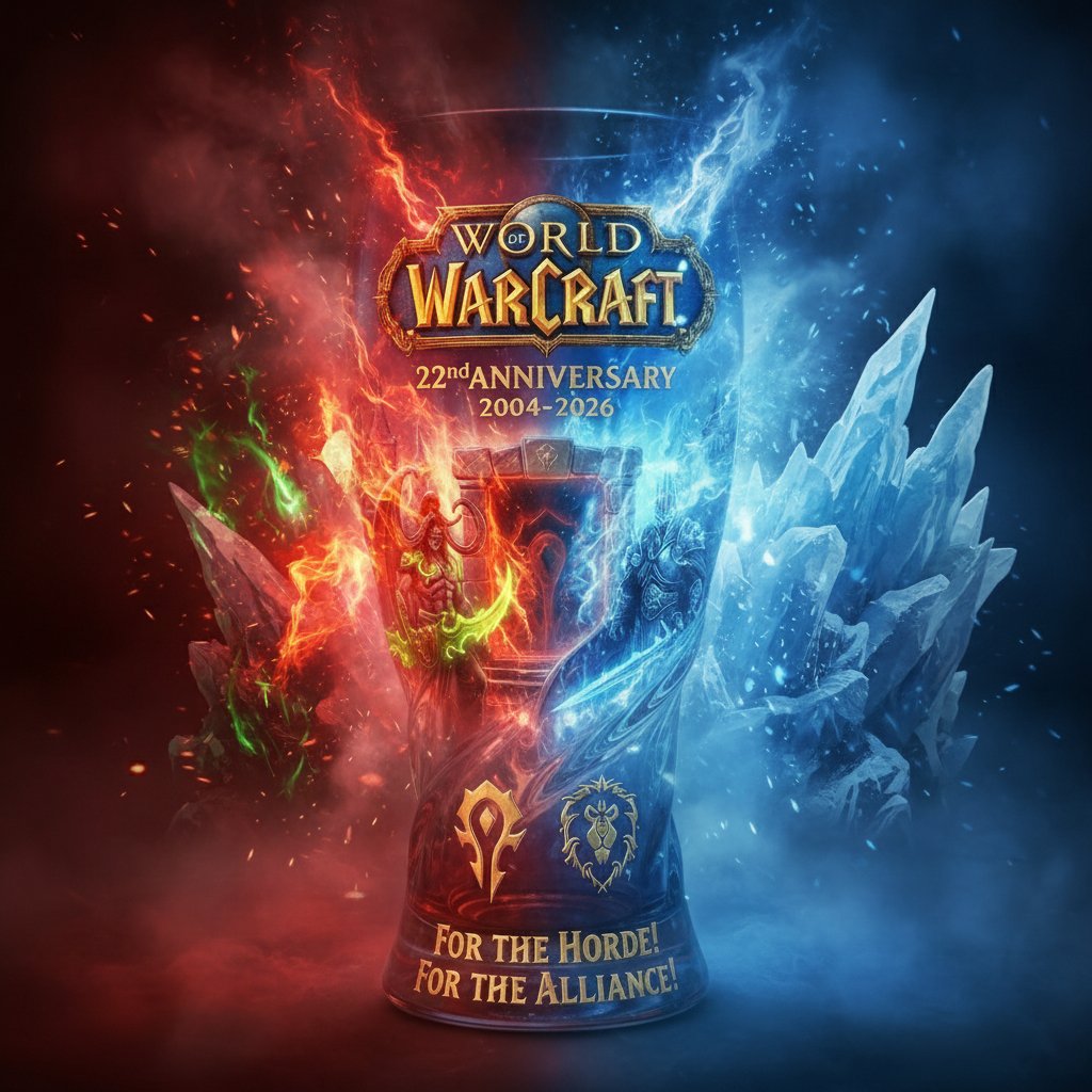 Gear up, adventurer! 🎉 This limited edition WoW 22nd Anniversary Glass is a must-have for fans of all ages. Whether you’re a proud member of the Alliance or the Horde, this stunning glass brings together iconic imagery from the world of Azeroth ⚔️🐉.